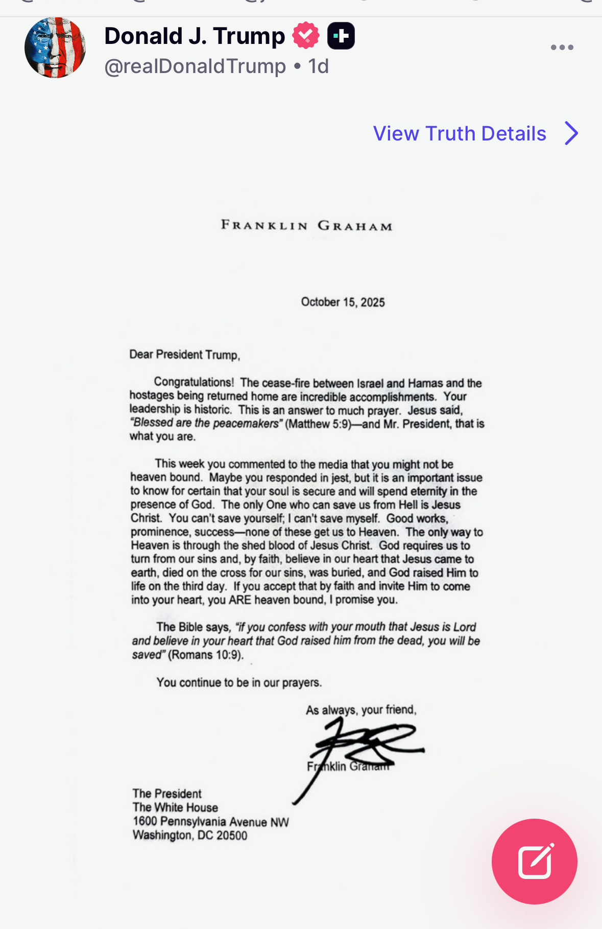 Therefore, I must admit: I loved the Franklin Graham letter to the most powerful person in the world. I further loved that Trump (or his team) posted it several months later. It is a universal Christian message ripe for Holy Week. "For all have sinned and fallen short of the glory of God..." (Romans 3:23). But, Christian love and repentance "can cover a multitude of sins..." (1 Peter 4:8).